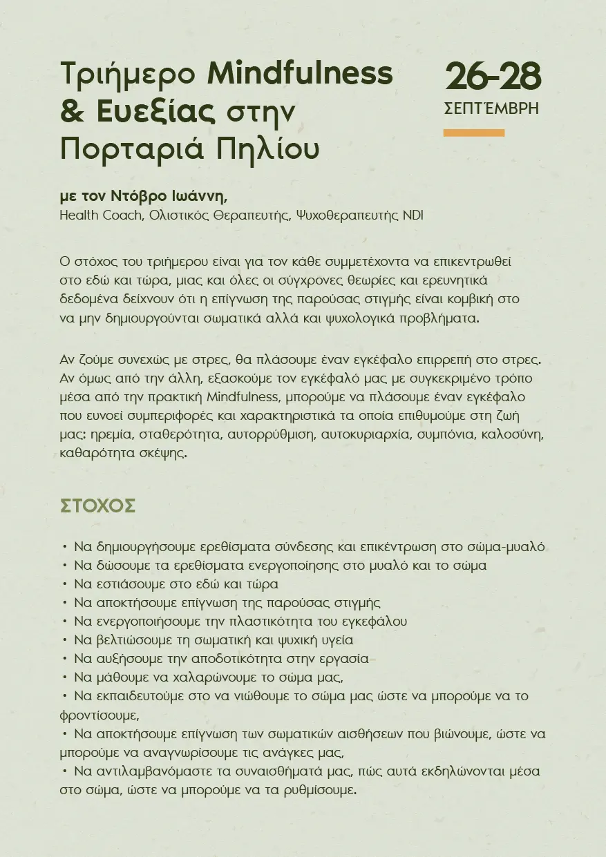 Τριήμερο MINDFULNESS και ΕΥΕΞΙΑΣ