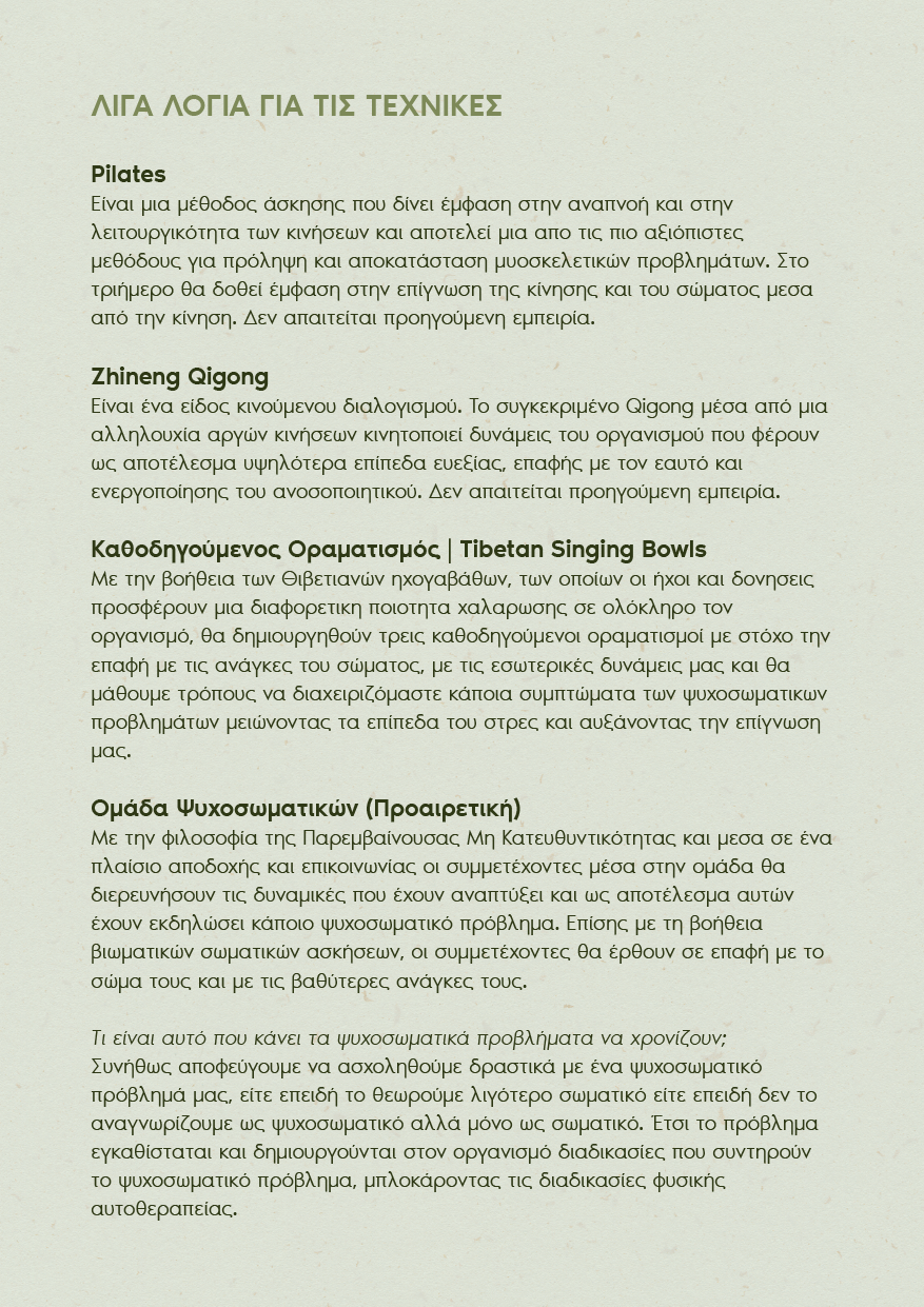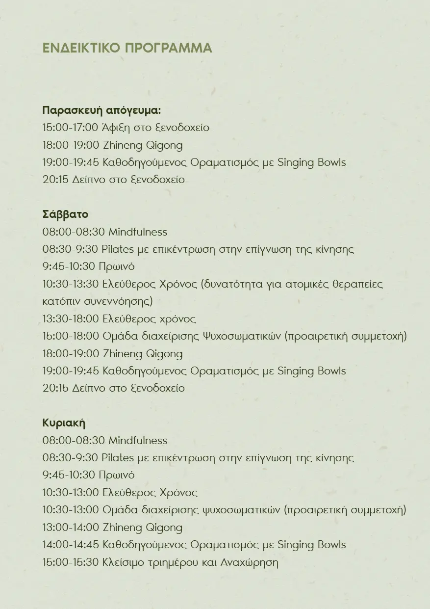 - Ομάδα με παρεμβάσεις διαχείρισης των ψυχοσωματικών προβλημάτων (20 ευρώ)